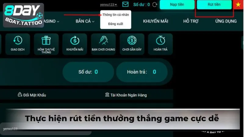 Quy trình rút tiền 8day về tài khoản ngân hàng siêu tốc, an toàn